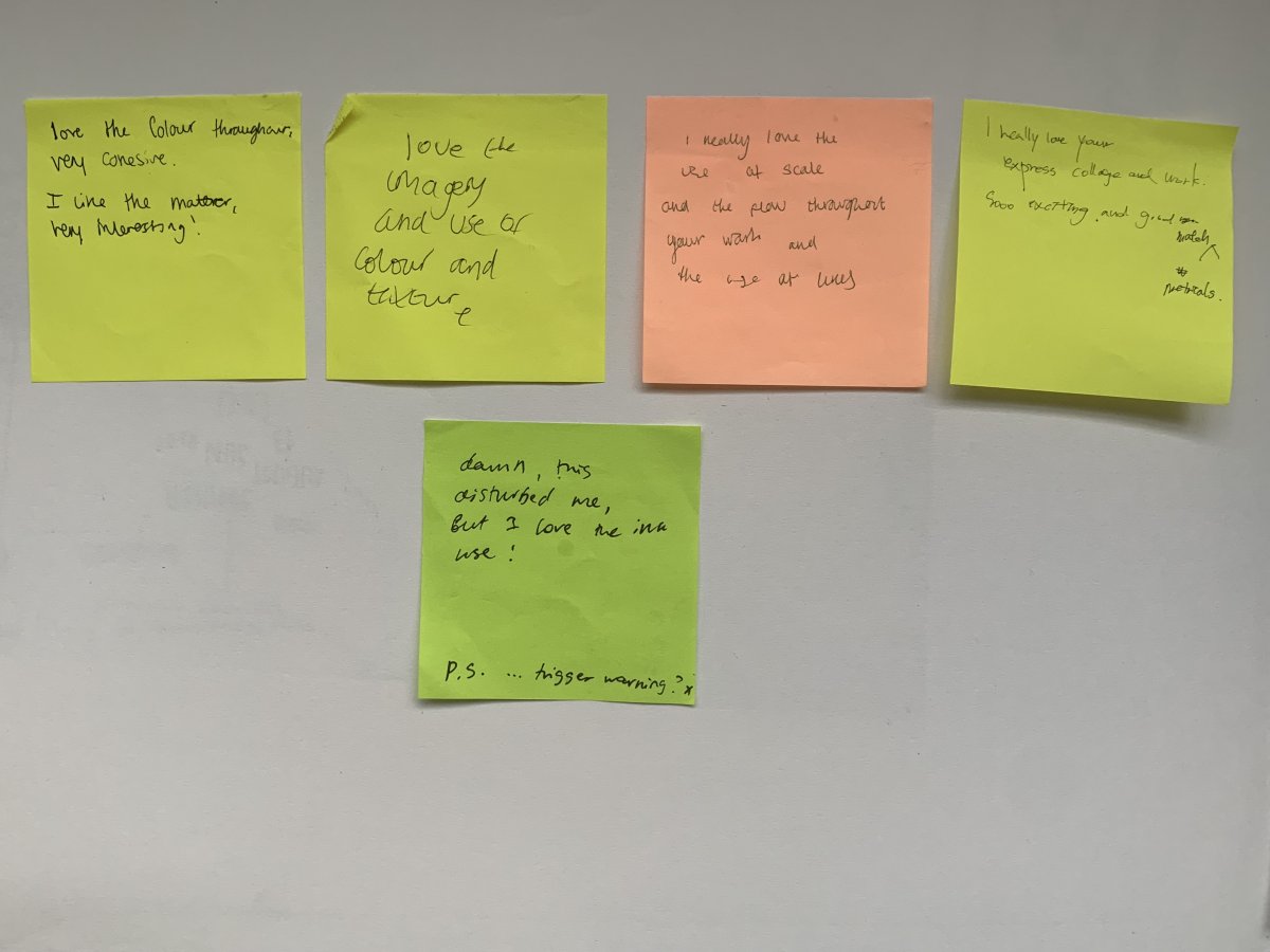These were the comments on the first collages I did in my sketchbook and one of them particularly interested me for the remark that it was saying at the end. The person wrote : " Damn this disturbs me ! (...) PS: ... trigger warning ? ".