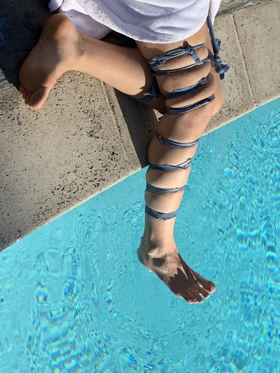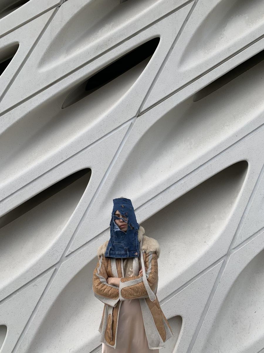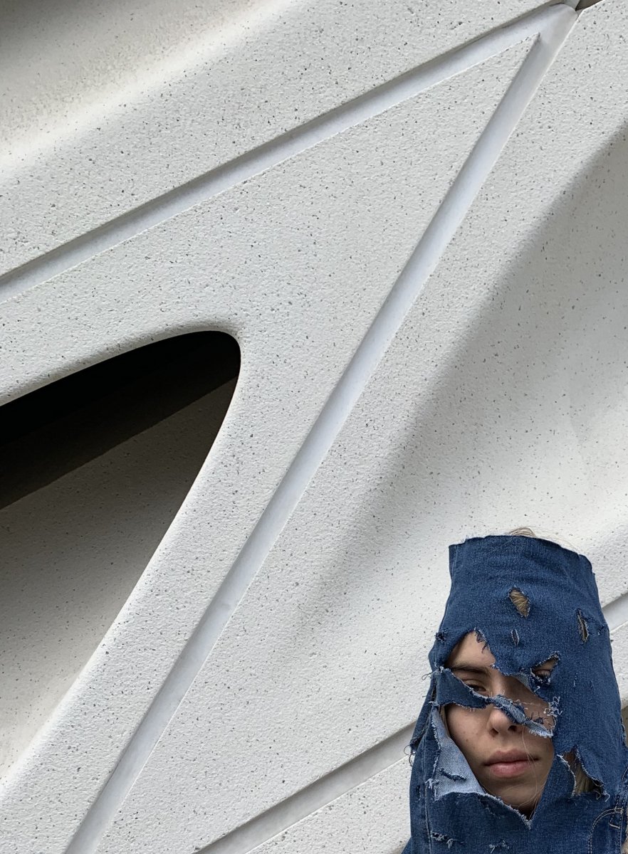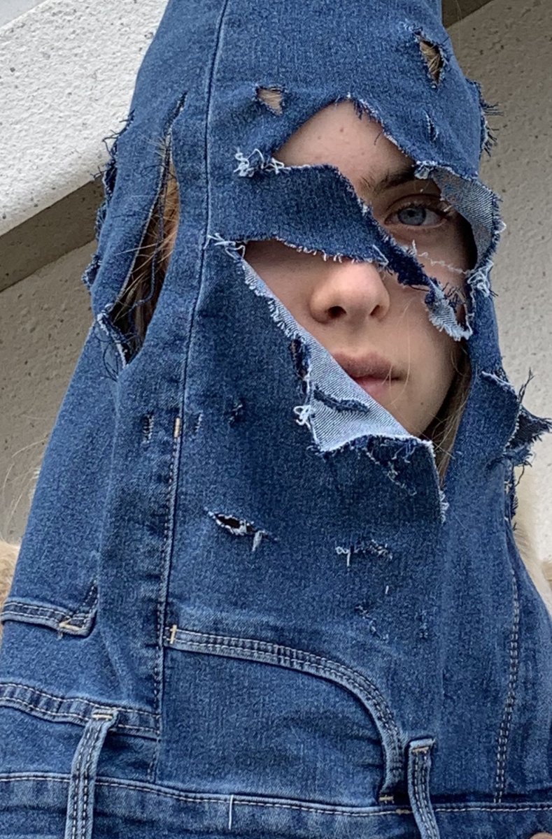 To start this project I decided to re-work on the deconstruction theme and use different kind of jeans or different shades to adapt myself with them by deconstructing them to an environment. I really wanted to put myself out there see where my limits are feel how it is when people stare you and you become ridiculous. I was interested in I would be perceived and started to behave as a new character I put myself into the role of this woman completely dressed with jeans that is ripped out of her hair and goes into a $.99 store just to see all the different things she could bye it has to do with someone can’t afford expensive clothes. And as denim is one of the cheapest fabrics you could have and buy you can find it anywhere and I wanted to put it over there and walk over the streets and become this new character. for the following days I will choose different spots in Los Angeles and adapt myself to environment and adapt the jeans and the denim to the environment make it something very chic transform it into something very brutal and from one end to the other from one extreme to the other I will try to transform this fabric this material that is already so much defined and has so much history I would like to transform it and make it in something new.