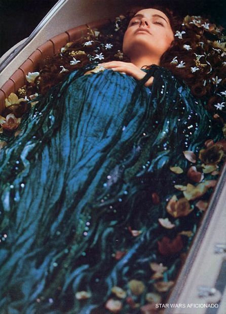 When I first saw this painting , it was when I was 8 and I remember starting crying for no reasons. I always admired how beautiful death looks in this painting and how peaceful and free ophelia looked floating in this bed of flowers. while uploading this pictures It made also think of the music video of Kylie Minogue '' Where the wild roses grow '' and also a scene from Star Wars of the death of played by Natalie Portman .