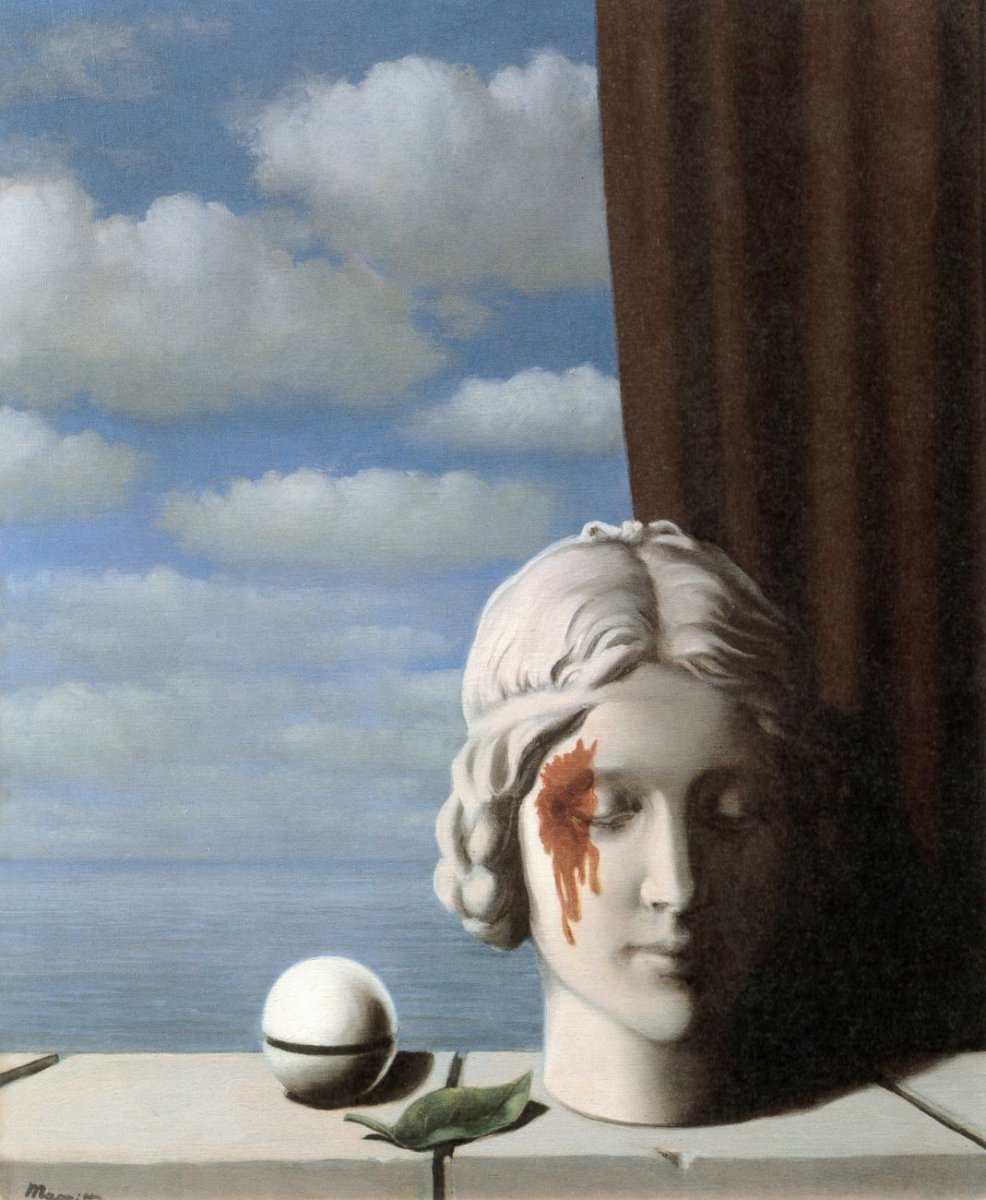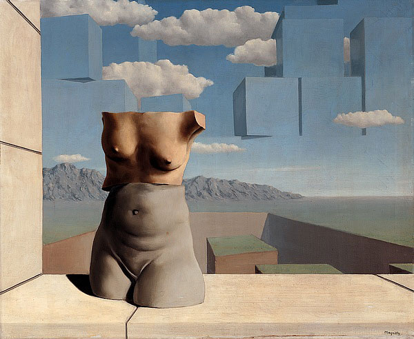 Frustration over desires appears frequently as the subject of Rene Magritte’s painting. A drapery prevents an intimate encounter between two people, transforming a love scene into a scene of dissatisfaction. The artists raises the question of how much do we really know other people, even the ones closest to us.