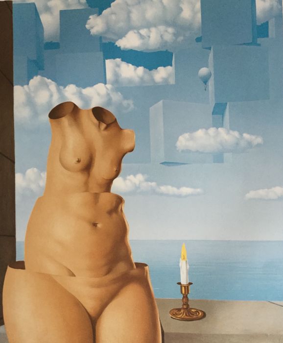 La magie noire , takes the motif of the metamorphosing nude figure placed in front of an idyllic landscape. Magritte had first explored the subject of La magie noire in 1934, a few months after participating in an exhibition, Le nu dans l’art vivant, at the Palais des Beaux-Arts in Brussels, and went on to paint numerous variations on the idea.